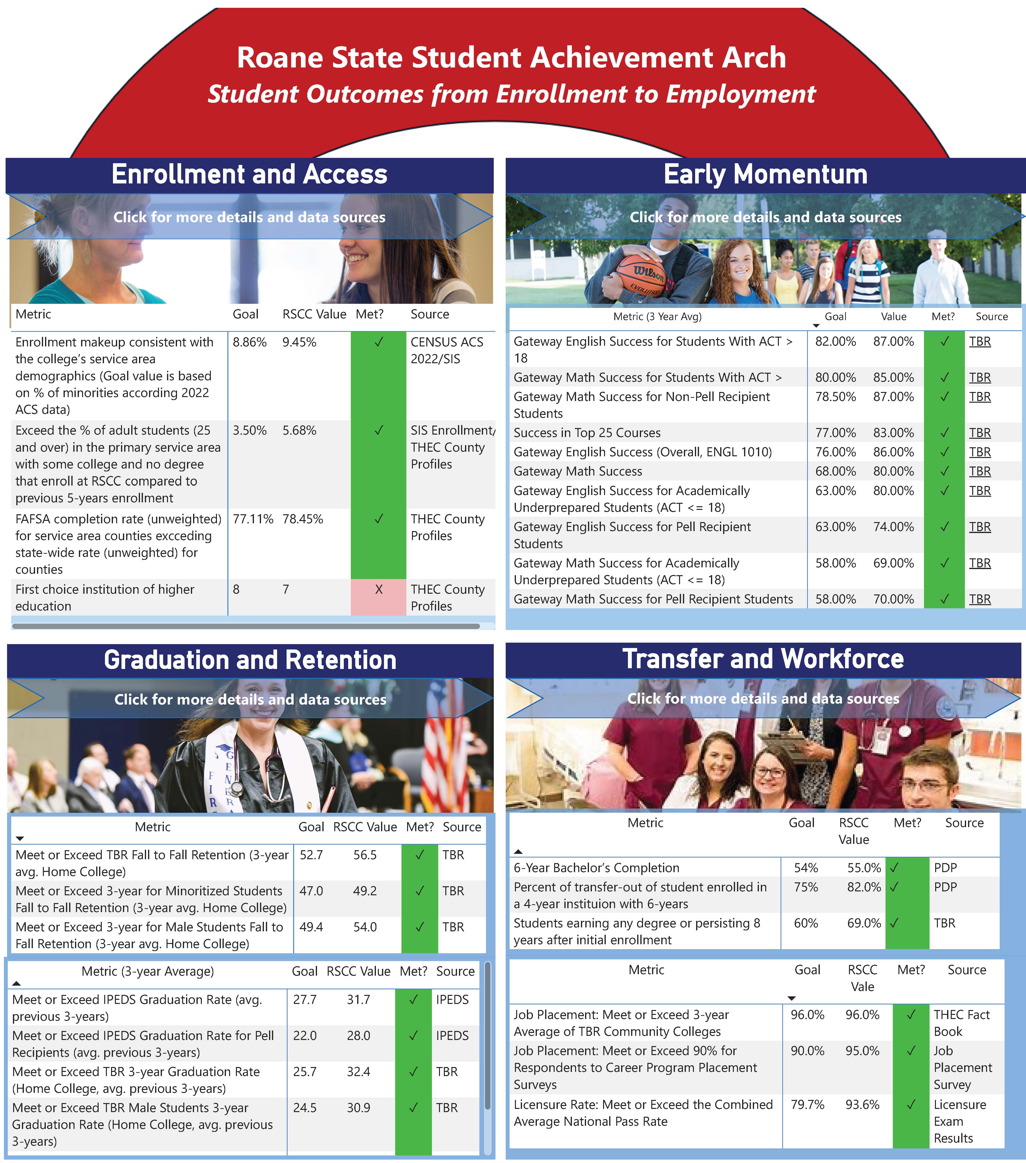 See more data on Roane State Student Outcomes in our Achievement Arch Dashboard