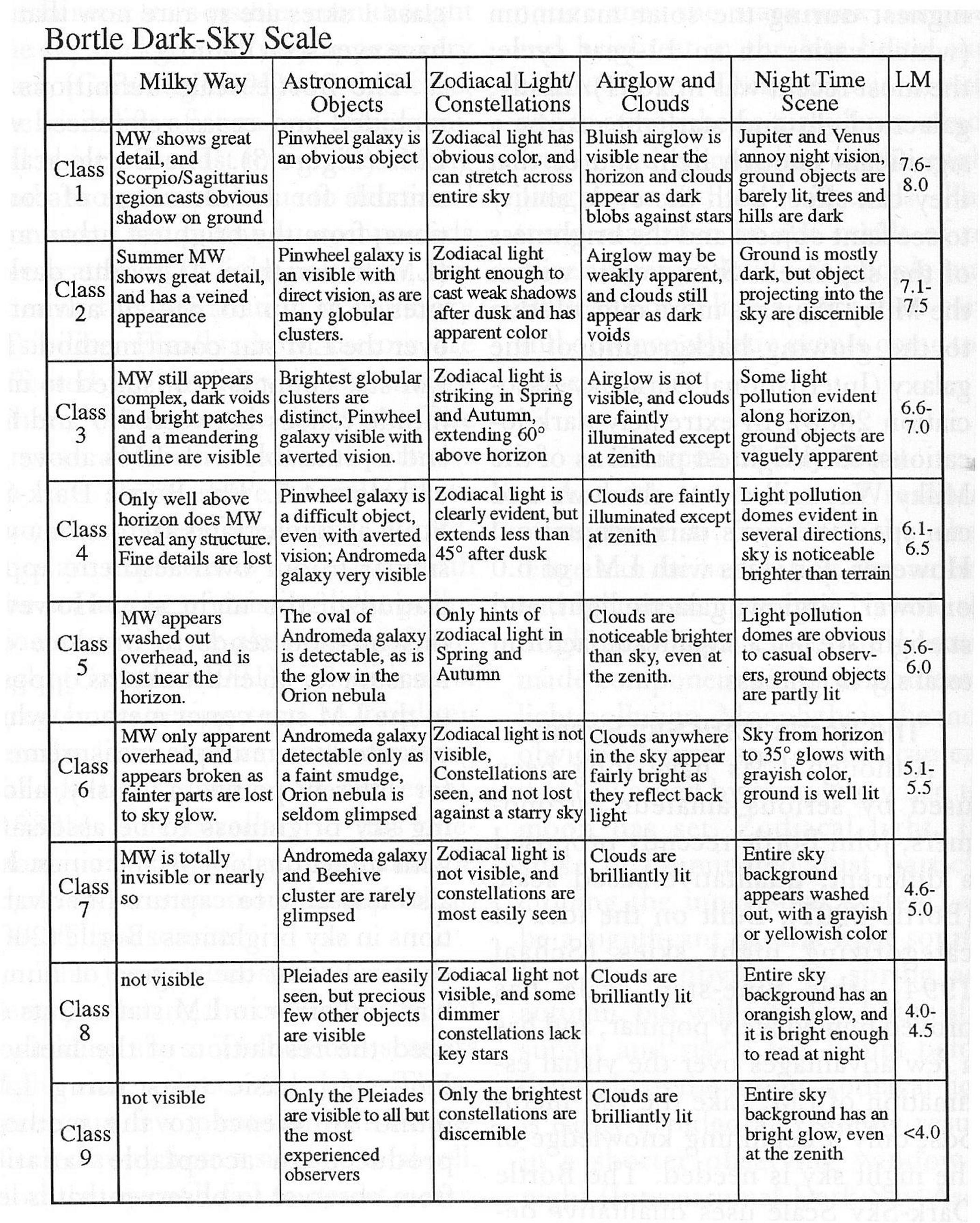 How do we measure the darkness of our skies? The Bortle Dark-Sky Scale (high-resolution image)
